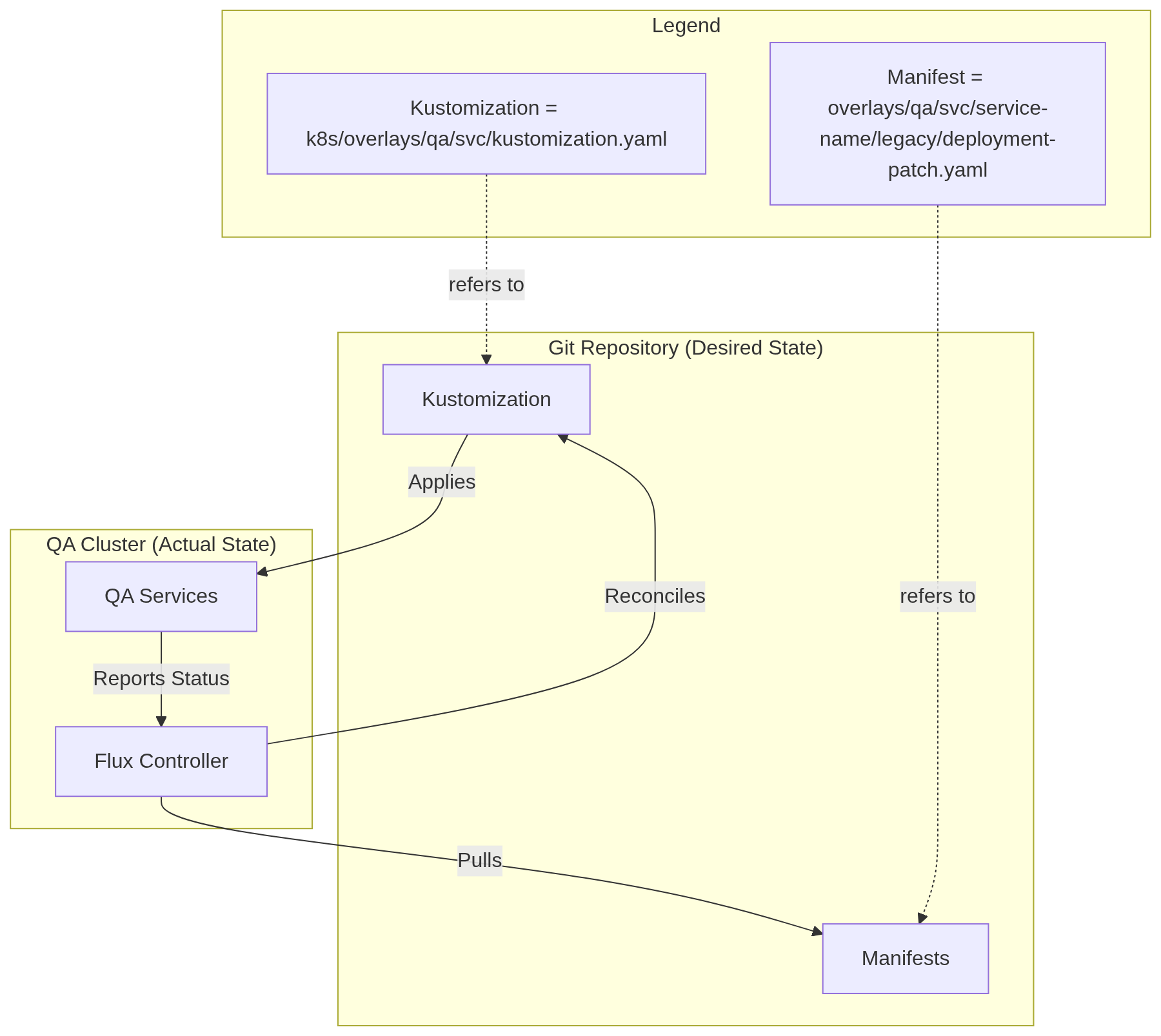 - Declarative Reconciliation: Finally, the QA cluster state needed to be continuously reconciled with the repository.