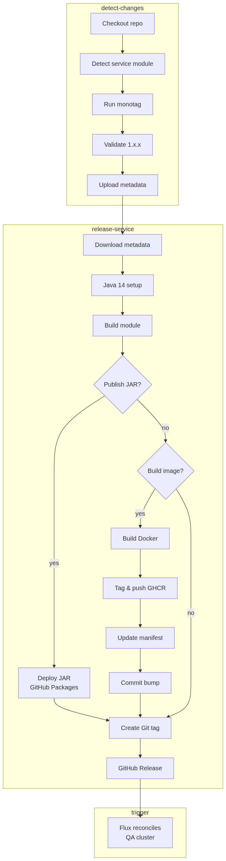 These are triggered by auto-commits from the API tier. They consume the newly published JARs and produce OCI-compliant images for GHCR. |